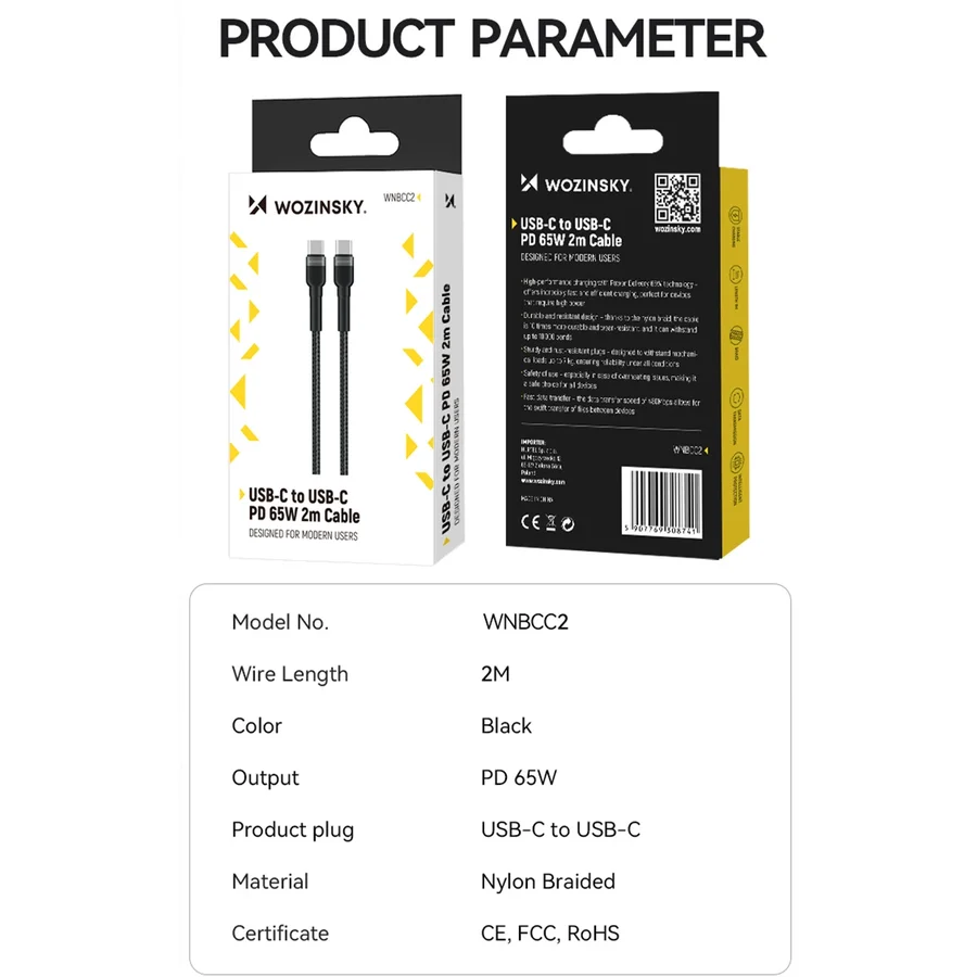 Wozinsky WNBCC2 USB Type-C / USB Type-C PD 65W 2 m Negru