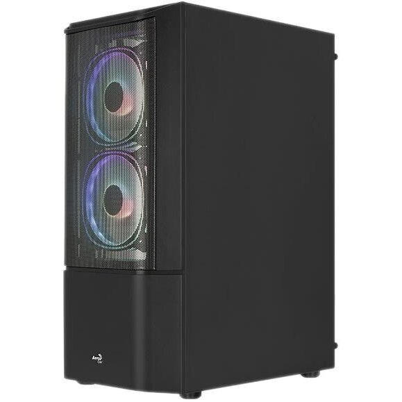 Carcasa Aerocool Quantum Mesh V3 neagra, SPCC Steel ATX Mid Tower, fara sursa (tip ATX, montata jos), interior vopsit negru, 2x 2.5”/3.5” (intern) 2x 2.5” (intern, cand este montata o placa de baza M-ITX), fata – 2x 120mm RGB LED fans (inclus) / 2x 140mm fans (optional), spate – 1x 120mm fan (optional), podea – 2x 120mm fans (optional), tavan – 2x 120mm fan (optional), 2x USB 3.0, 1x USB 2.0, HD Audio, ATX / microATX / mini-ITX, sloturi expansiune: x7, inaltime maxima cooler procesor: 158mm, lungime maxima placa video: 297mm (fara ventilatoare montate), suport radiator water cooling: fata – 1x 120/240/280mm, spate – 1x 120mm, dimensiuni (HxWxD): 450x206x360mm, greutate: 4.3kg