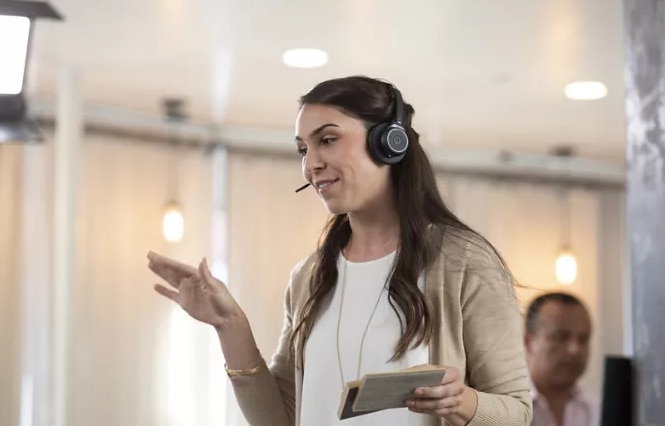 MISCATI-VA MAI MULT SI MAI MULT TIMP Mergeti si vorbiti cu usurinta, cu o raza de actiune wireless de pana la 50 de metri, pana la 24 de ore de convorbire si un confort corespunzator pentru toata ziua. Faceti ca acele teleconferinte lungi sa fie mai usoare. | ![]() |