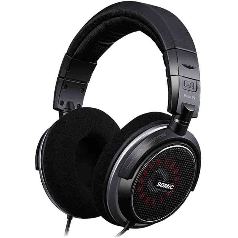 Somic V2, design ergonomic, difuzoare: 42mm (impedanta: 54?, frecventa raspuns: 15Hz-30KHz, sensibilitate (S.P.L): 95dB?3dB), lungime cablu: 3m, conectori: 1x jack TRS 3.5mm placat cu aur si adaptor jack TRS 6.3mm placat cu aur, greutate: 388g