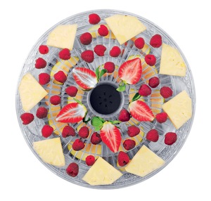 | Distributie perfect uniforma a caldurii Ventilatorul integrat asigura deshidratarea uniforma pe fiecare tava - nu trebuie sa va faceti griji ca fructele sau legumele vor fi uscate prea mult pe o tava si prea putin pe alta. Rezultatul va fi pur si simplu perfect! | ![]() |