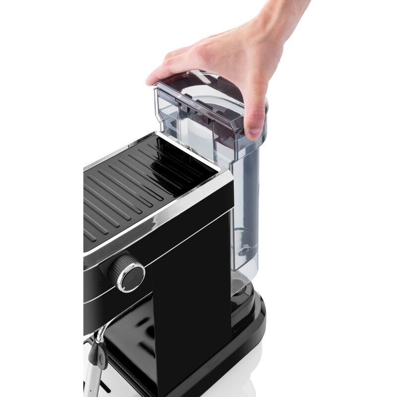 Aparat de cafea espresso cu design subÈ›ire, cu presiunea pompei de până la 20 bari È™i baghetă de abur.Un aparat de cafea manual cu design retro al colecÈ›iei ETA STOIO te va face să te îndrăgosteÈ™ti de el la prima vedere. Celelalte simÈ›uri vor fi atrase de mirosurile minunate È™i gustul delicios al cafelei preparate profesional. Cafeaua sub conducerea dvs. Un aparat de cafea ETA Storio vă simte dorinÈ›ele – vă permite să pregătiÈ›i una sau două căni de espresso , în plus, puteÈ›i seta È™i o dimensiune individuală de cafea (25-60 ml pentru o ceaÈ™că, 60-110 ml pentru doua cupe). Celelalte caracteristici ale sale asigură că rezultatul este perfect de fiecare dată. Temperatura potrivita este asigurata datorita unui sistem de incalzire Thermoblock de cea mai buna calitate. FuncÈ›ia de răcire a sistemului de apăva fi apreciat mai ales cand vei dori sa pregatesti cafeaua imediat dupa ce folosesti o bagheta de abur.Acest aparat de cafea elegant este conceput pentru a fi utilizat cu cafea măcinată . CoÈ™urile cu filtru din oÈ›el inoxidabil cu suprapresiune cu fund dublu È™i presiunea pompei de până la 20 de bari fac din cafeaua măcinată un espresso delicios ca de la un barista profesionist în doar câteva secunde. Forma finală poate fi modificată datorită funcÈ›iei de apă fierbinte sau spumă de lapte pe care o puteÈ›i crea cu uÈ™urință cu o baghetă de abur . Astfel, te poti rasfata cu cappuccino sau latte de fiecare data.destinat a fi utilizat numai cu cafea măcinată Sistem de incalzire cu termobloc Portafiltru din aluminiu È™i 2 filtre cu fund dublu din oÈ›el inoxidabil la suprapresiune Functie apa calda pentru prepararea bauturilor calde OpÈ›iunea de 1 sau 2 căni Setare individuală a mărimii cupei Bagheta de abur pentru prepararea spumei de lapte Rezervor de apă transparent detaÈ™abil pentru controlul nivelului apei FuncÈ›ionare sigură datorită suprapresiunii È™i siguranÈ›ei termice FuncÈ›ia de răcire a sistemului de apă Farfurie pentru incalzire pahare Design subÈ›ire - lățime 14,5 cm Capacitate rezervor apa 750 ml Intrare 1350 W Presiune pompa max. 20 Bar Lungimea cablului de alimentare 0,75 m Design elegant din oÈ›el inoxidabil Accesorii incluse: Lingurita masurata 2 coÈ™uri filtrante din oÈ›el inoxidabil (dimensiunea unei cani, două căni)