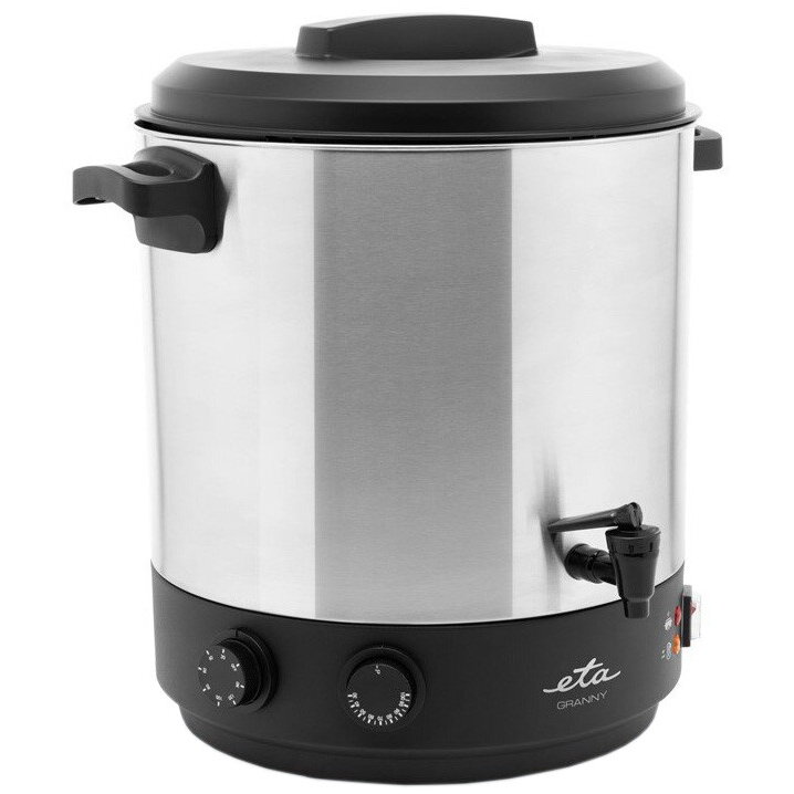 Capacitate mare 25 L Putere de intrare 1800 W Container din otel inoxidabil pentru o curatare usoara Termostat pentru control precis al temperaturii in intervalul 30 – 100 ° C Functia cronometru / interval de timp 20-120 minute Functionare continua – mentine temperatura Avertizare Sonora: indica momentul in care se atinge temperatura setata sau timpul de preparare Robinet de curgere adecvat pentru servirea bauturilor calde Protectie la supraincalzire si protectie la fierbere in lipsa lichidului Dulceata de casa ca la bunica Cu boilerul ETA Granny 1127 , puteti pregati gemuri delicioase in confortul bucatariei dumneavoastra. Familia va aprecia aparatul nu numai pe timpul iernii ci si in celelate anotimpuri. Pe langa gemurile gustoase veti putea prepara supe, gulas sau bauturi calde. Alte caracteristici: - Indicator luminos - Picioare antiderapante - Manere izolate termic ETA Granny 1127 este echipat cu un recipient din otel inoxidabil de inalta calitate cu un volum de 25 litri . Elementul de incalzire este ascuns si manerele izolate termic faciliteaza manipularea si reduc riscul de arsuri. Picioarele antiderapante garanteaza stabilitatea pe orice suprafata plana. In plus dispozitivul de siguranta impotriva supraincalzirii si pornirii fara apa confera o siguranta foarte ridicata. Usurinta in utilizare Aparatul este echipat cu un termostat reglabil continuu in intervalul 30 - 100 ° C . Puteti alege functionarea continua sau puteti seta temporizatorul de la 20 pana la 120 minute. Indicatorul luminos va informeaza in mod clar cand a fost atinsa temperatura necesara si functia KEEP WARM mentine temperatura constanta. Robinetul din plastic permite oricui sa-si umple paharul atat cat doreste.