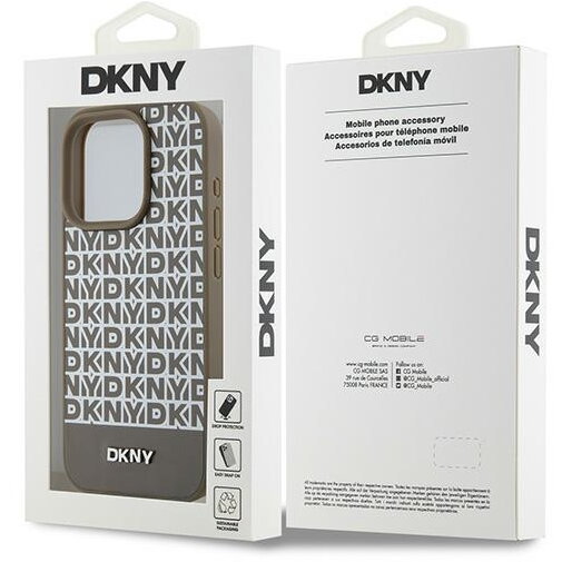 Husa iPhone 15 Pro - DKNY Leather Printed Pattern Metal Logo MagSafe (DKHMP15LPSOSPW) - Brown