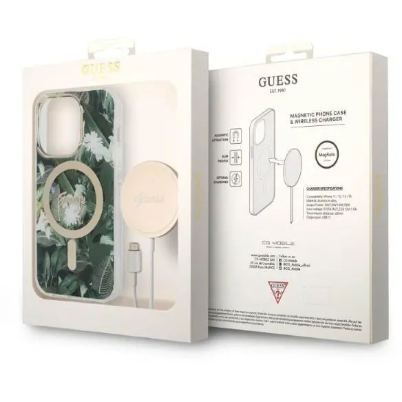 Husa Set Guess GUBPP14LHJEACSA Case+ Charger iPhone 14 Pro 6.1" green/green hard case Jungle MagSafe
