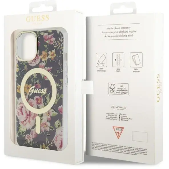 Guess GUHMP14MHCFWSK iPhone 14 Plus 6.7" black/black hardcase Flower MagSafe