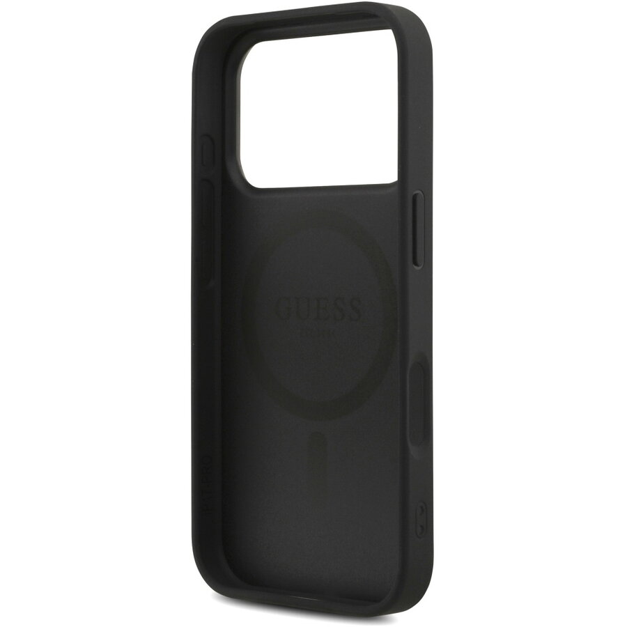 Husa Husa pentru iPhone 17 Pro - Guess Hardcase 4G Triangle Logo MagSafe with Cord Strap (GUHMP17LP4TSDPPSK) - Black