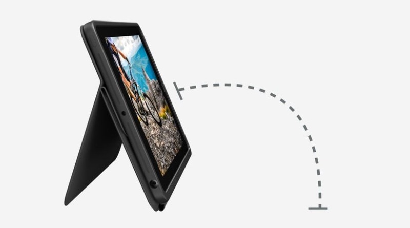 | KICKSTAND DIN ORICE UNGHI Kickstand-ul flexibil ofera un unghi de inclinare de pana la 40°, astfel incat sa puteti gasi intotdeauna unghiul potrivit pentru sarcina la indemana. Balamalele mecanice robuste asigura faptul ca suportul de kickstand ramane ferm in pozitie si nu se prabuseste, chiar si de la lovituri puternice. | |