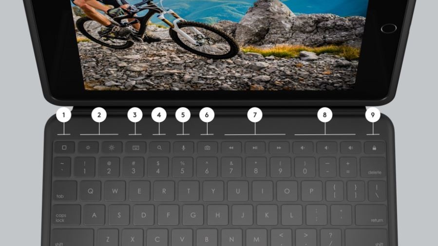 | RANDUL COMPLET DE TASTE DE COMENZI RAPIDE iOS Uita de vanatoare in jurul ecranului sau in meniuri pentru a efectua actiuni simple - Rugged Folio dispune de un rand plin de taste de comenzi rapide. 1) Home: Du-te la ecranul de start 2) Luminozitatea ecranului: regleaza luminozitatea in sus sau in jos 3) Virtual Keyboard: arata / ascunde tastatura virtuala 4) Cautare: aduce pana iOS camp de cautare 5) Siri: activeaza asistentul digital 6) Screenshot: ia fotografie a ecranului curent 7) Controale media: Inapoi, Redare/Pauza, Inainte 8) Controale de volum: Dezactivare sonor, Crestere volum, Reducere volum 9) Ecran pornit / oprit: blocheaza iPad (a 7-a generatie) ecran | |