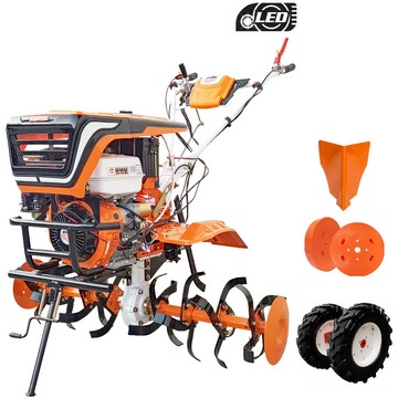 Motosapatoare Ruris 918K, 18 CP, roti cauciuc 6.00-12, rarita, set contragreutati 20kg, are ca şi caracteristică sistemul de transmisie, tracţiune (osia motoare) pe care sunt fixate cu ajutorul şuruburilor roţile de transport sau frezele săpătoare în funcţie de utilizare.