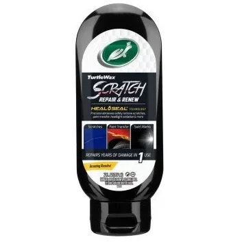 Pasta Polish Fin Turtle Wax Scratch Repair and Renew, 207ml lustruieste toate zgarieturile cu o laveta din microfibra pana cand se obtine rezultatul dorit. Nu iti face griji cu privire la deteriorarea vopselei existente sau la crearea unui aspect neuniform. Pasta Polish Fin Turtle Wax Scratch Repair and Renew, 207ml se amesteca cu vopseaua existenta in timpul reparatiei. Aceasta formula nu este o „acoperire”, zgarieturile sunt indepartate definitiv. Formula de lustruire rapida reface vopseaua si face ca masina sa arate din nou ca noua, indepartand usor si in siguranta imperfectiunile suprafetei si apoi protejeaza suprafata cu stratul avansat.Pasta Polish Fin Turtle Wax Scratch Repair and Renew, 207ml este ideal pentru toate masinile cu un strat dur sau moale de vopsea, inclusiv finisajele cu strat transparent de astazi. Lustruitul poate fi folosit direct pe zgarieturi sau pentru curatarea generala si indepartarea oxidarii. Celulele ultrafine de lustruire elimina petele luminoase si lasa o stralucire reflectorizanta. Cu mana sau cu masina, formula netezeste suprafata vopselei la o stralucire asemanatoare sticlei si lasa o stralucire de inalta protectie de lunga durata.Beneficii Pasta Polish Fin Turtle Wax Scratch Repair and Renew, 207ml:- pentru indepartarea permanenta a zgarieturilor minore, a petelor si a vartejurilor usoare;- lasa o stralucire de protectie, stralucitoare, reflectorizante;- poate fi folosit manual sau cu o masina de lustruit.Cantitate: 207 ml