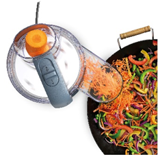 ![]()  | 360° Express ServeTM Ai nevoie sa tai legumele rapid sau sa razi branza pentru macaroane? Te poti baza pe functia 360° Express Serve pentru feliere sau razuire nelimitata. Rapid si usor, permite felierea direct in vasul de gatit sau intr-un recipient separat. In plus, cu ajutorul designului 360°, poate fi folosit in orice unghi, incadrandu-se perfect pe orice blat de bucatarie.  |