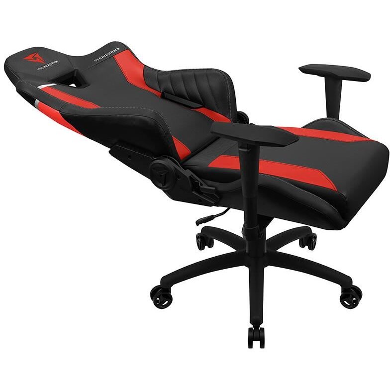 Scaun gaming Thunder X3 TC3 Max negru cu rosu, permite diverse reglaje: inaltime, inclinare, rotire 360°, balans 3°-18°, inaltime scaun: 133-143cm, inaltime sezut: 50-60cm, inaltime spatar: 90cm, latime spatar: 60cm, latime sezut: 60cm, adancime sezut: 55cm, material captuseala: Leatherette with carbon pattern, echipat cu piston cu gaz clasa 4, inclinare spatar: 135°, include perna lombara si cervicala, greutate maxima suportata: 125kg, manere 2D