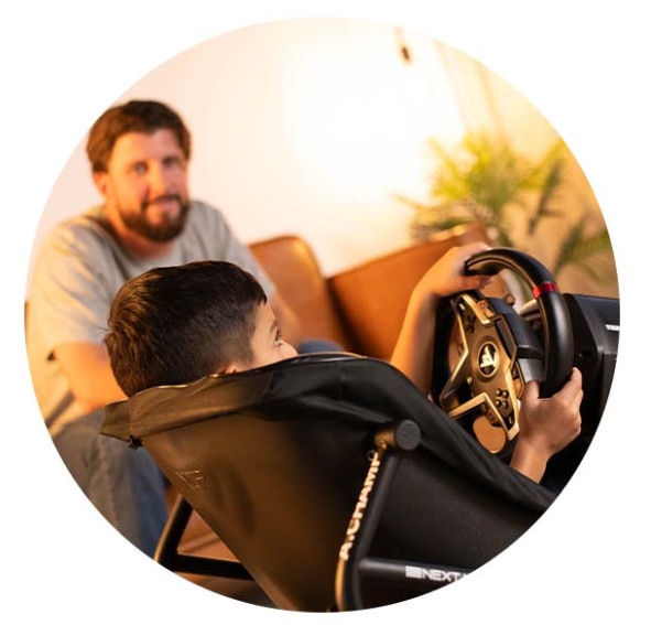 Construit pentru familie Dezlantuiti fiorul curselor sim pentru intreaga familie cu cabina de pilotaj Next Level Racing® Go Kart Plus. Proiectat pentru a gazdui atat copiii, cat si adultii, designul sau ergonomic reproduce pozitia autentica de Go Karting, asigurand confort si imersiune pentru cursele de diferite inaltimi de la 110-200 cm si tipuri de corp. Simultan, configuratia cockpitului Go Kart Plus poate fi utilizata pentru o gama larga de titluri de jocuri de curse. Scaunul in stil Go Kart proiectat la comanda, complet cu o husa din material premium, imbunatateste experienta de curse, oferind in acelasi timp optiuni usoare de curatare pentru parinti. Echipat cu rotile Next Level Racing® Lockable Castor, Go Kart Plus se poate deplasa fara efort intre camere pentru o depozitare convenabila atunci cand nu este utilizat.  | |