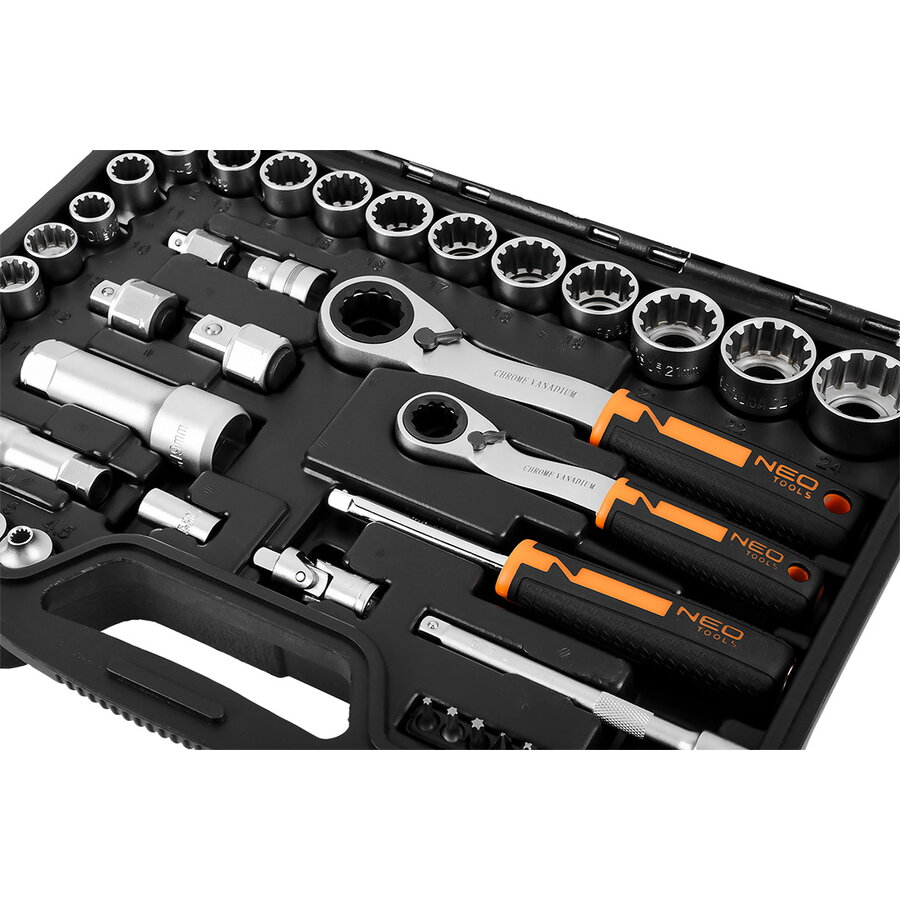 NEO TOOLS Set de chei tubulare de trecere 1/4" + 3/8", 46 buc.