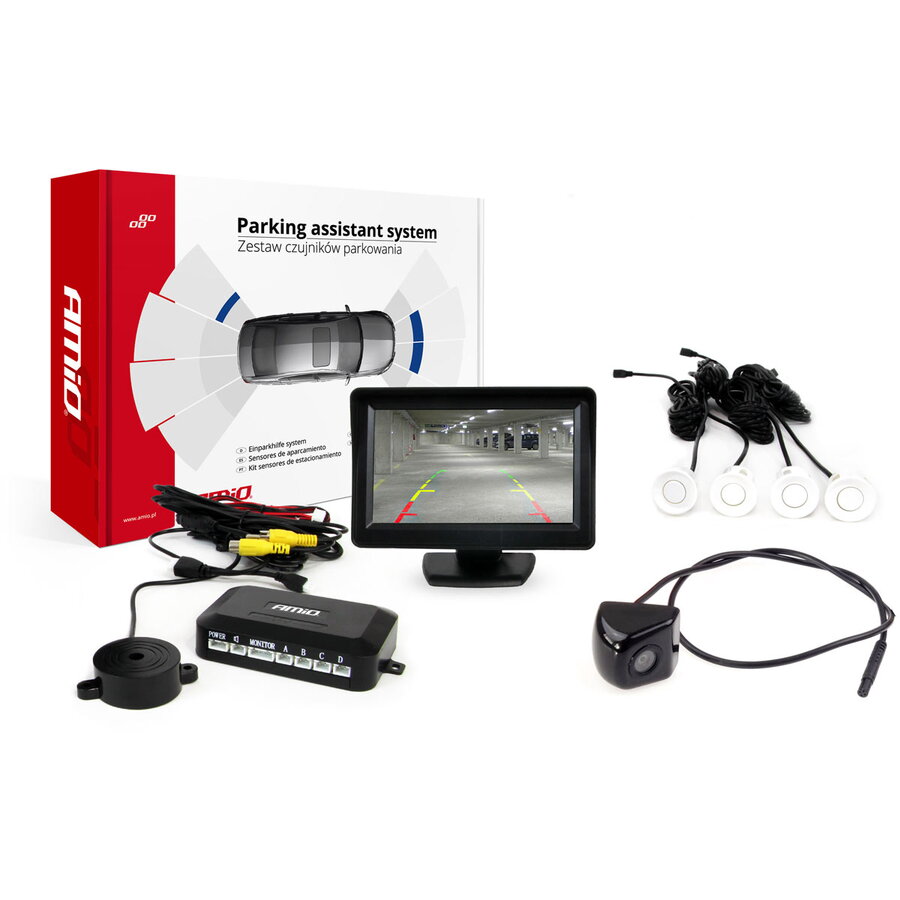 AMiO Kit senzori parcare tft01 4.3" cu cameră hd-310 4 senzori alb