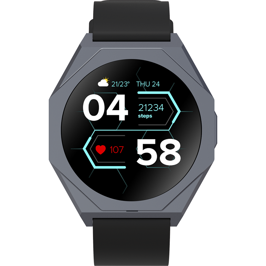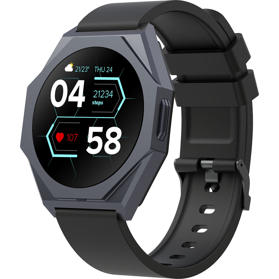 CANYON Otto SW-86, Smart watch Realtek 8762DK LCD 1.3'' LTPS 360X360px, TP G+F 1+gesture 192KB Li-ion polymer battery 3.7v 280mAh,Gun aluminum alloy case middle frame+plastic bottom case+black silicone srap+gun strap buckle.host:45.4*42.4*9.6mm Strap:260*20mm 40.7g - Articol: CNS-SW86BB - Vendor: CANYON - Tipul de Produs: Smart Watch - Materialul carcasei: Aluminiu