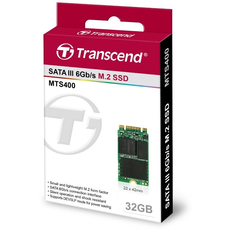 SSD Transcend SSD M.2 2242 SATA 6GB/s, 32GB, MLC (read/write; 230/40MB/s) TS32GMTS400