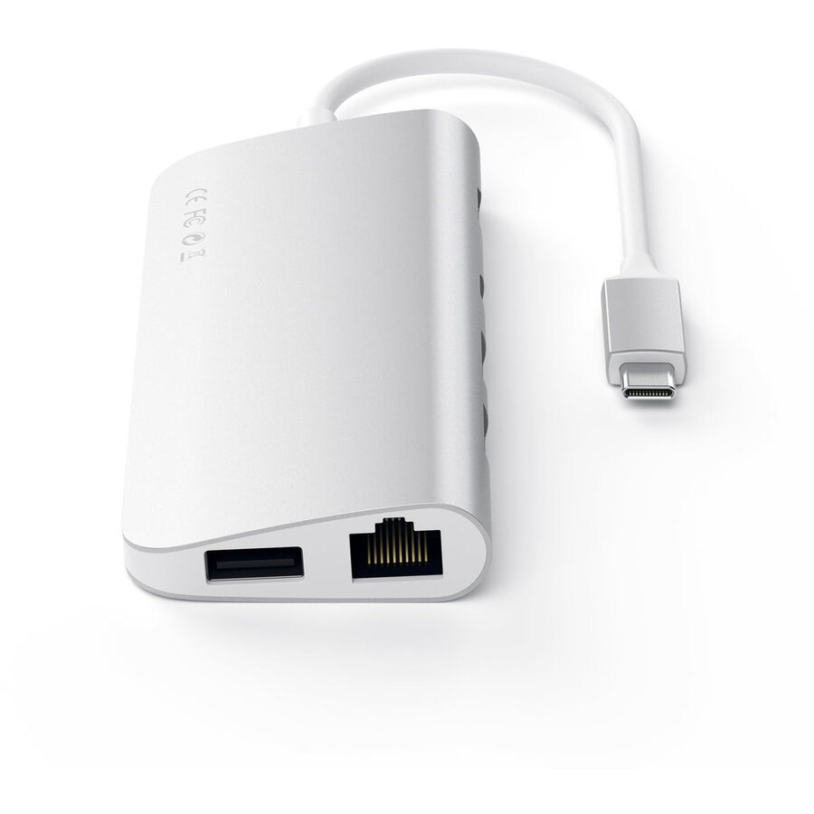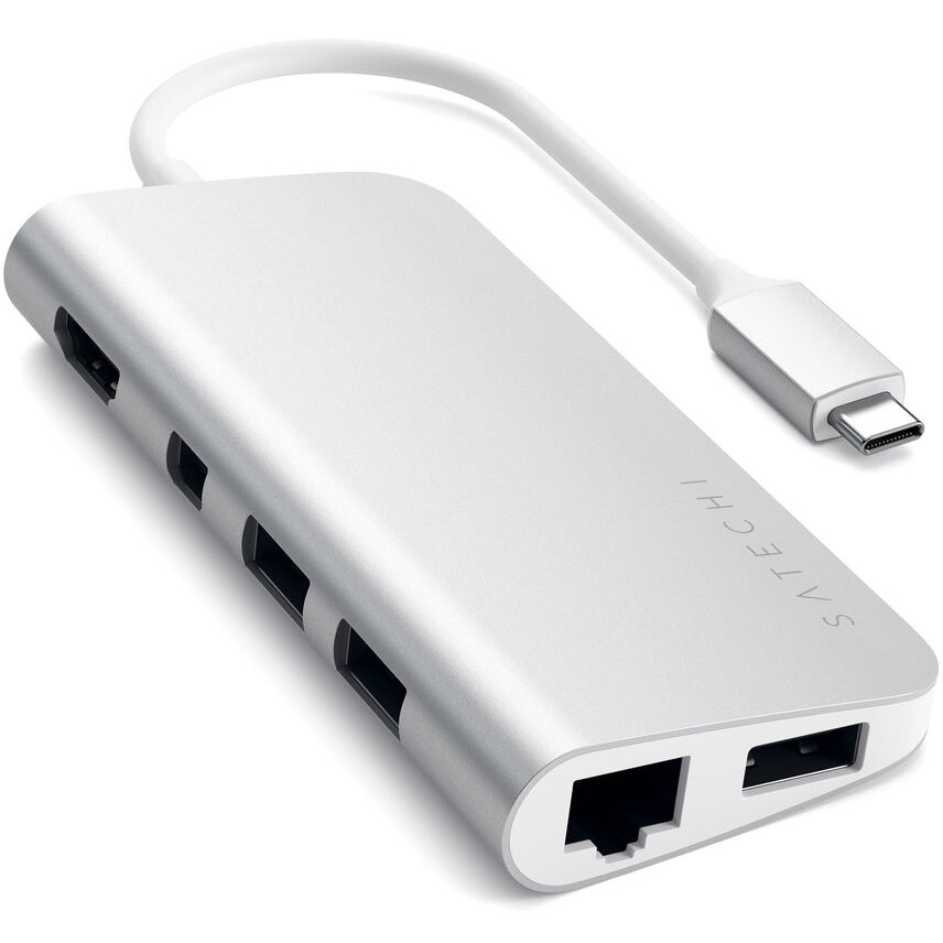 SATECHI Adaptor Hub USB-C Multimedia aluminiu HDMI 4K Ethernet MicroSD MiniDP Argintiu