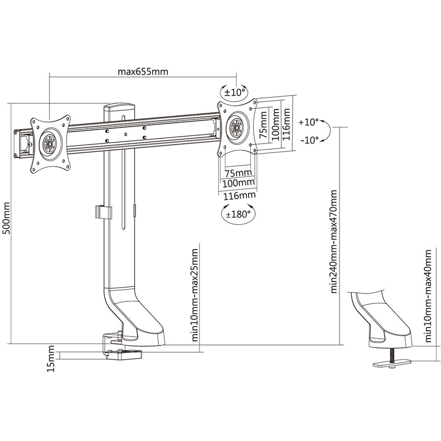 Suport pentru 2 monitoare MACLEAN 17-27", 14 kg, MC-854, negru