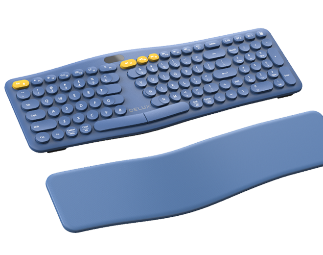 Tastatura ergonomica wireless/bluetooth Delux GM903CV, albastru