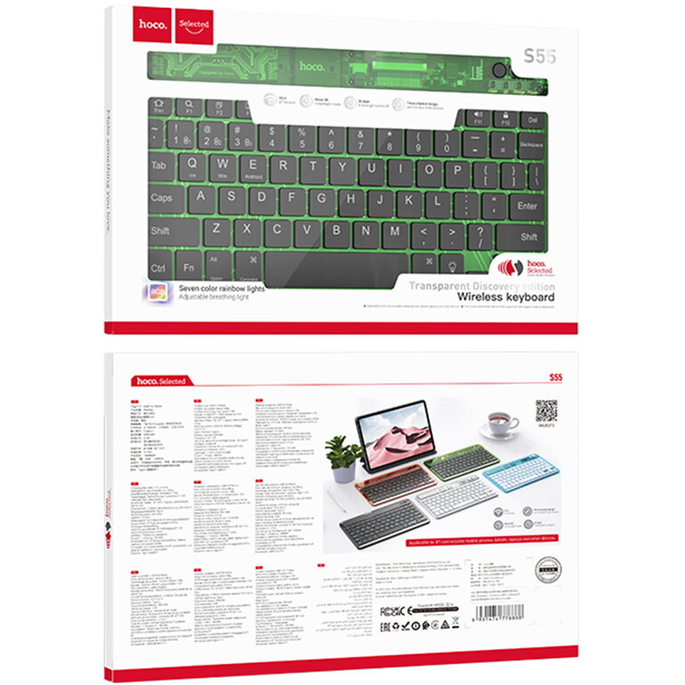 Tastatura Tastatura Wireless Bluetooth, 500mAh - Hoco Transparent Discovery Edition (S55) - Ice Blue Mist