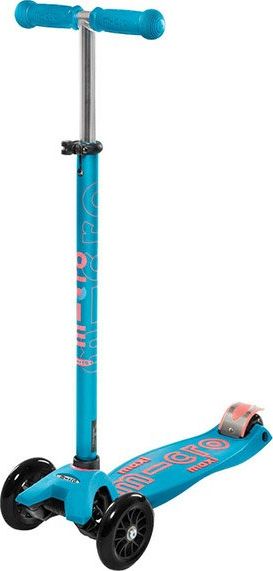 Micro Maxi Deluxe Turquoise este un scuter pentru tineret cu trei roți fabricat de compania elvețiană Micro, destinat copiilor cu vârsta cuprinsă între 5-12 ani. Va fi un înlocuitor excelent pentru primul scuter Mini Micro Deluxe pentru copiii mai mici. Aceeași calitate de construcție ca și predecesorul său, același mecanism de direcție echilibrat, dar capacitatea de încărcare și înălțimea ghidonului sunt adaptate juniorilor ceva mai mari și mai în vârstă. Ghidon reglabil, inaltime maxima pana la 92 cm. Ușurința scuterului permite utilizarea și transportul ușor, deoarece cântărește doar 2,5 kg.