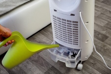 Reimprospatare economica Spre deosebire de aerul conditionat, racitorul este mult mai bland si mai economic. Dispozitivul sufla aer prin filtrele de apa, care il racesc. Pentru functionare, este suficient sa umpleti rezervorul de 5 litri cu apa. Daca doriti sa raciti si mai mult aerul, adaugati in rezervor agentii frigorifici care sunt inclusi in pachet. In caz de lipsa de apa, veti fi notificat printr-un semnal sonor. Daca scoateti rezervorul de apa sau este gol, aparatul se opreste automat. | ![]() |